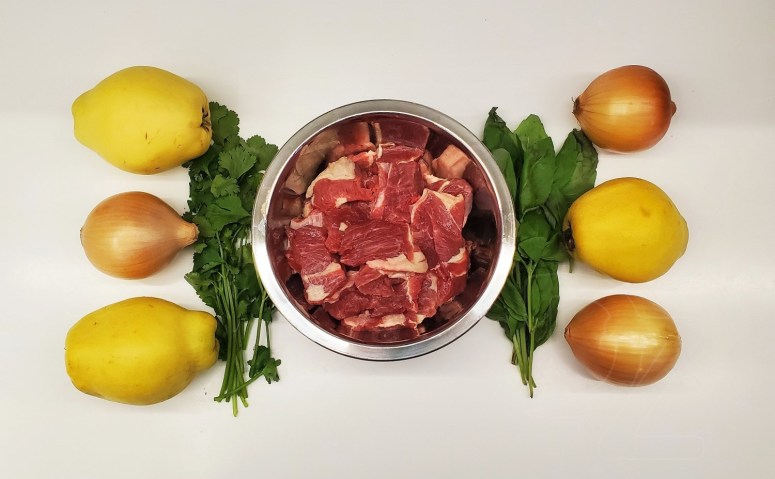 Уменьшить огонь до маленького, закрыть крышкой и томить до готовности: мясо и айва должны стать мягкими. Это занимает от 1 до 2 часов, в зависимости от сорта айвы, качества мяса и размера кусков.