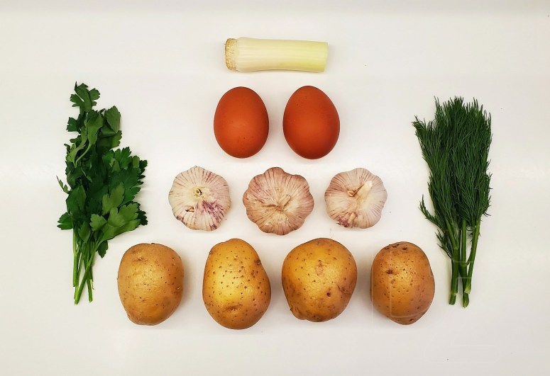 - зеляніна (пятрушка, кроп, цыбуля-парэй ці зялёная цыбуля) – для падачы