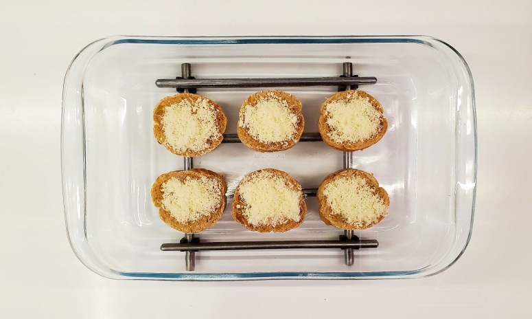 Падаваць часнэчку, пасыпаўшы зелянінай, з запечанымі грэнкамі: