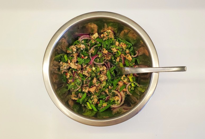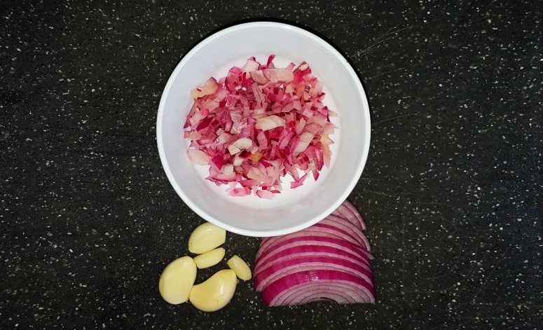 На данном этапе можно добавить измельчённый лук (по желанию: это вкусно, но уже не классический рецепт):