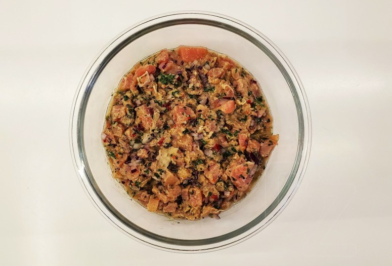 Можно использовать слабосолёную рыбу, но гораздо вкуснее севиче из сырой рыбы – ведь кислота в цитрусовых соках сделает рыбу мягкой и безопасной (назовём это денатурацией белков, содержащихся в рыбе)😉.