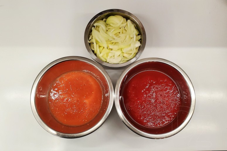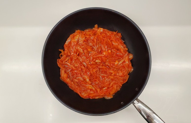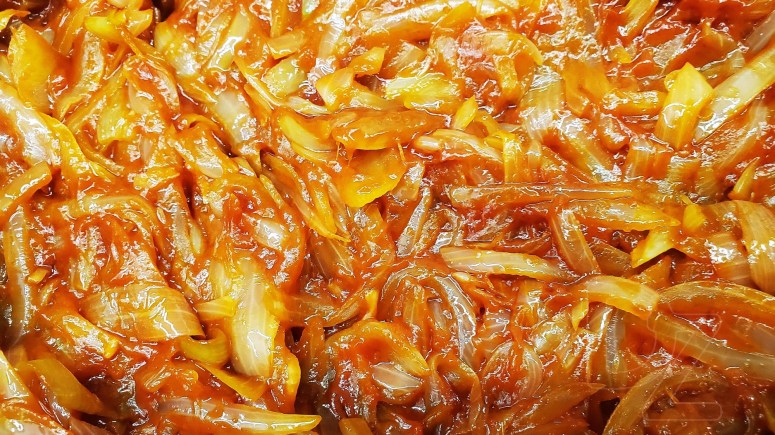 Согласно некоторым рецептам, лук можно не обжаривать, а закладывать отдельно, с томатной пастой. Вкус будет более свежим, но исчезнет привкус жареного лука.