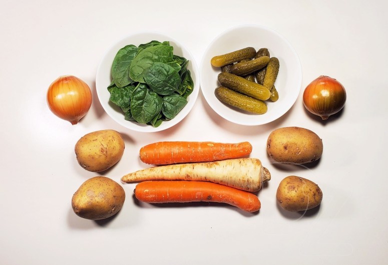 Магчыма, першапачаткова, акрамя салёных агуркоў, у яго дадавалі агурковую траву – агурочнік – замест шпінату/салаты.