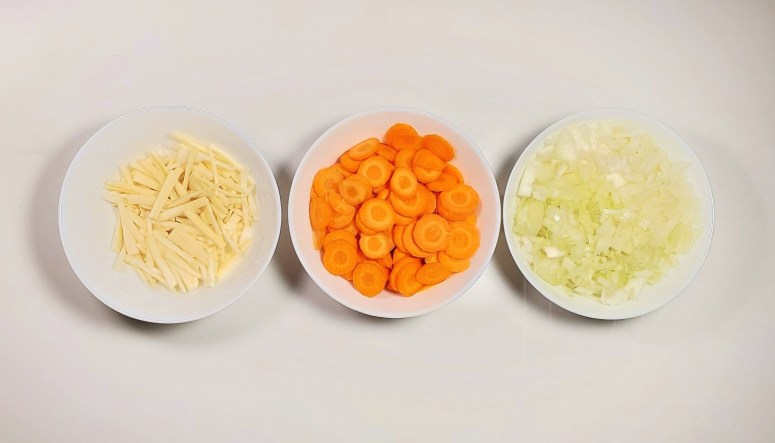 Цыбулю парэзаць дробна, моркву – на колцы.