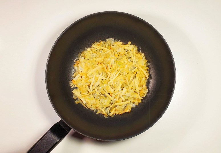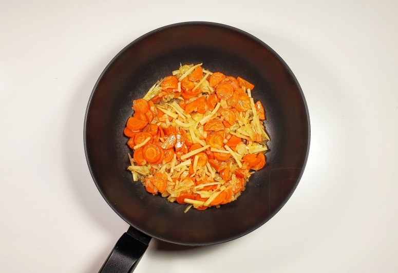 Дадаць моркву і абсмажваць, пакуль яна не зробіцца мяккай:
