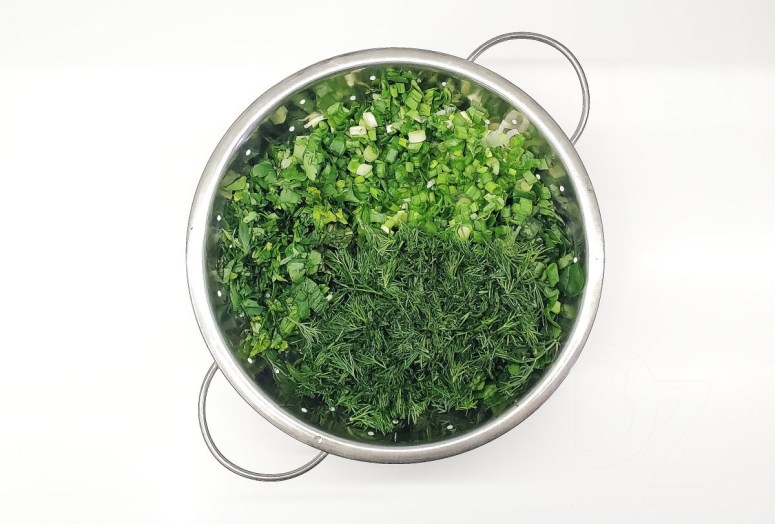 - зеляніна (кінза, кроп – абавязкова, мята, пятрушка, базілік – пажадана, па паўпучка)