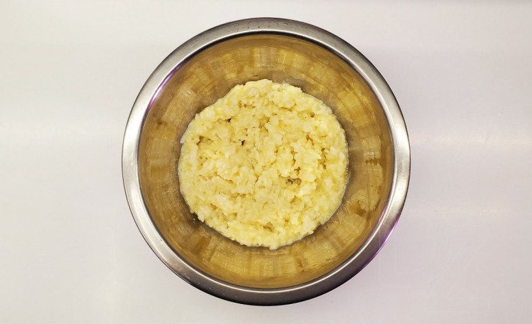 Адправіць у рондаль, дадаць мацоні/катык, уліць ваду і старанна размяшаць.