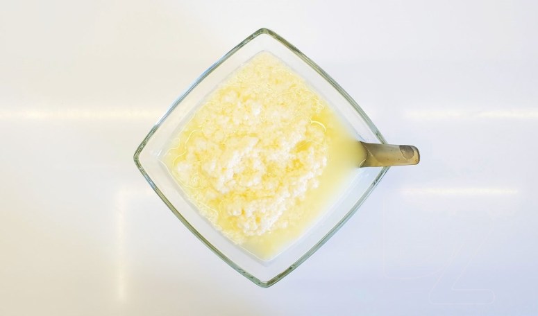 Добавить соль, сахар или мёд и хорошенько взбить: