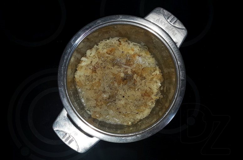 В некоторых рецептах картушку предварительно обжаривают вместые с луком.