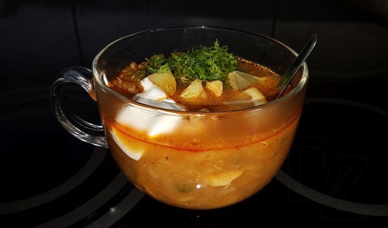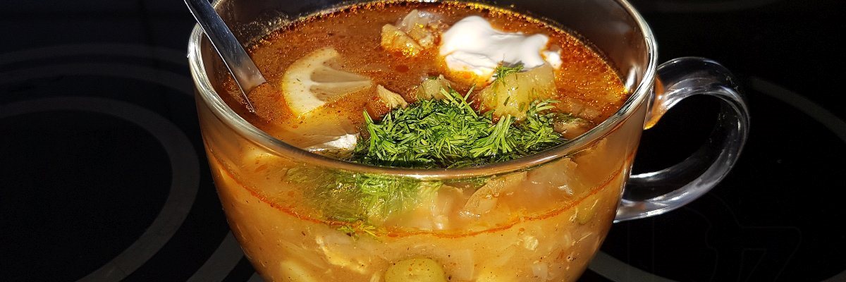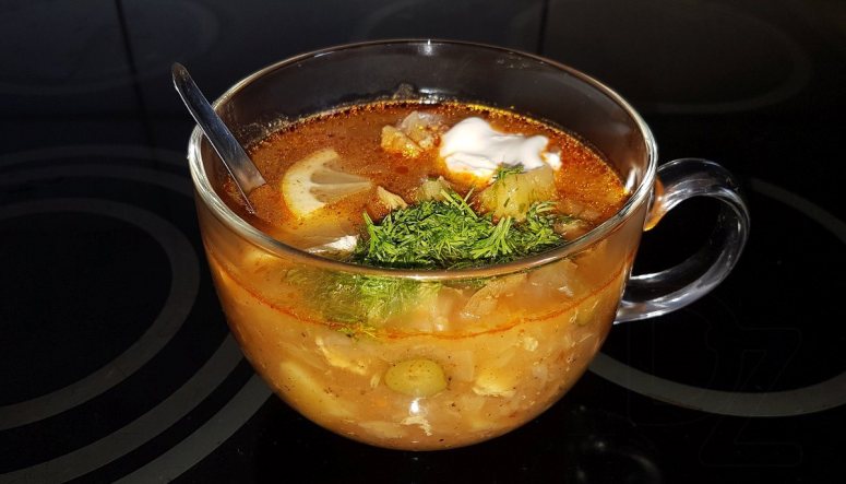 В любом случае, по своей идее солянка – что-то среднее между щами и рассольником. От щей – капуста и сметанная заправка, от рассольника – соленья.