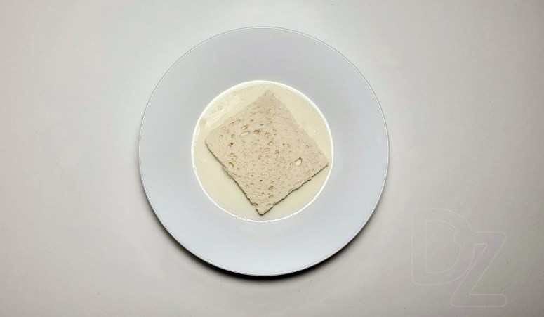 У лусты белага хлеба адрэзаць скарынку і замачыць лусту ў малацэ: