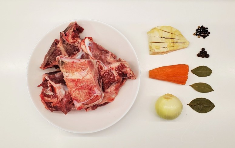 Прыгатаваць ялавічны булён, дадаўшы ў канцы цыбулю, моркву, перац розных гатункаў і лаўровы ліст.