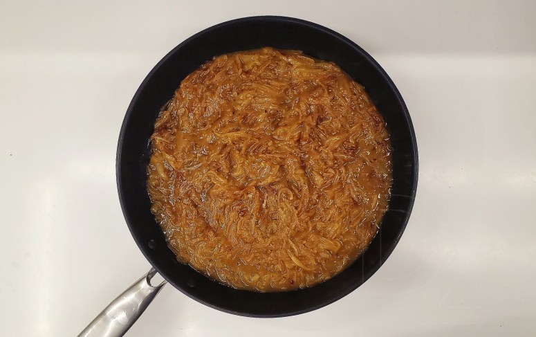 Карамелізаваць цыбулю – можна з дадаткам чабору, калі выкарыстоўваецца сухі чабор: