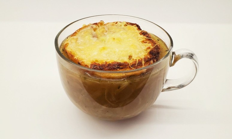 Рэпутацыя цыбулевага супу была крыху падмочана ў сярэднявеччы. Пах цыбулі добра маскаваў пах алкаголю, і часам несвядомыя, але прыстойныя парыжане ўпотай убабахвалі ў суп кубачак-другі каньячку і без нічога ніякага праводзілі вечар у рэспектабельнай кампаніі. За гэта soupe à l’oignon заслужыў мянушку «суп п’яніц». Кубкамі мы алкаголь уліваць не будзем, але з павагі да традыцыі крыху плюхнем.😉