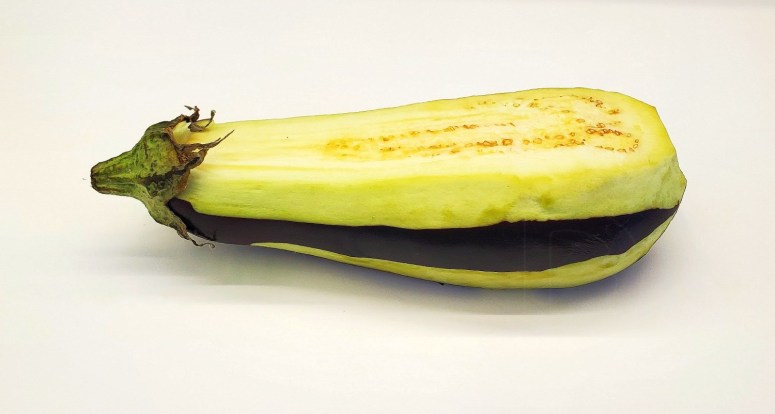 Почистить баклажан «зеброй» (не для красоты, а для нежности вкуса), срезать сбоку 1/5 часть – типа снять крышку: