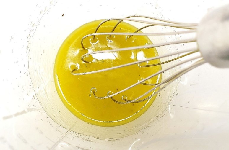 Смешать оливковое масло, лимонный сок, соль и перец: