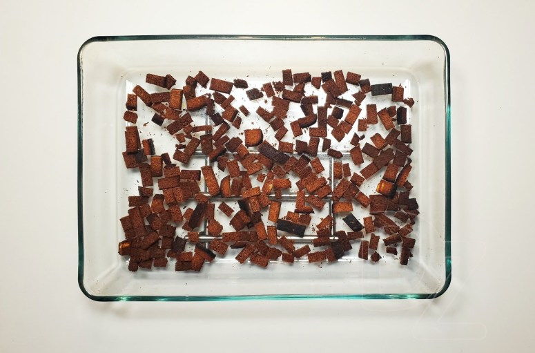 Можна сушыць і ў тостэры, але пажадана, каб хлеб не падгарэў, інакш квас будзе гаркавіць.