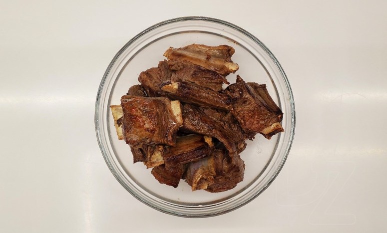 Рёбрышки нарезать на кусочки с одной косточкой: