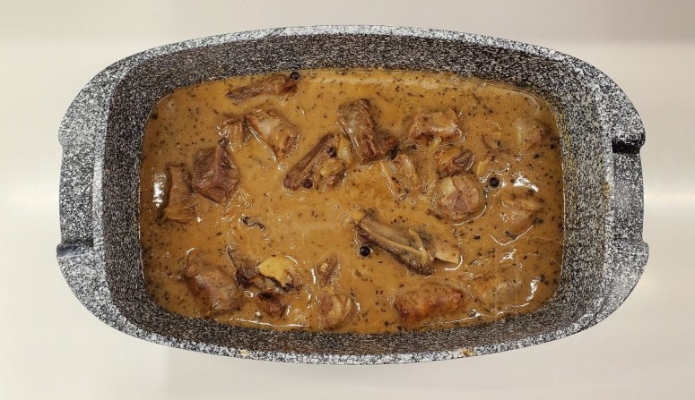 Тушить до готовности. Время зависит от мяса, кастрюли и т. д. Мясо должно стать мягким и очень сочным: