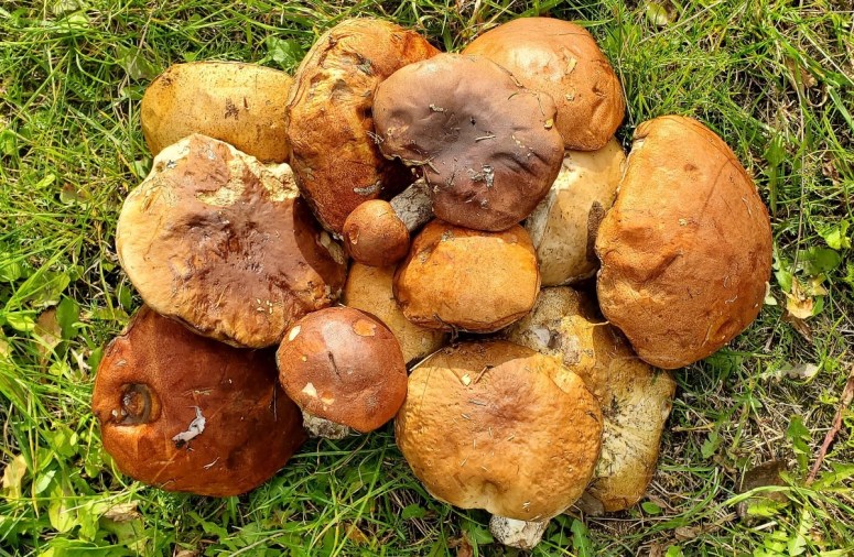 Неплохо — шляпки подосиновиков (ножки жестковаты), рыжики, лисички и шампиньоны — все эти грибы предварительно отваривать не нужно.