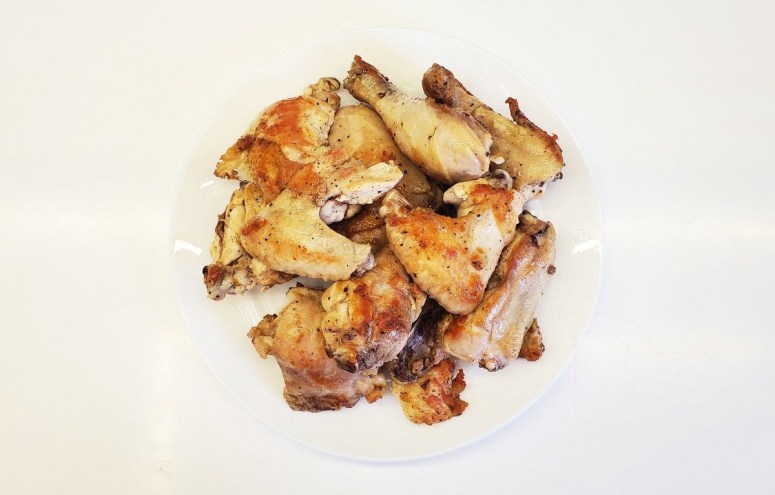 Курыцу разрэзаць на кавалкі, пасаліць, папярчыць.