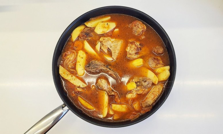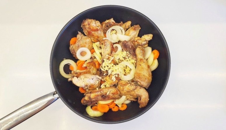 Заліць невялікай колькасцю булёну ці вады – так, каб пакрыць прадукты: