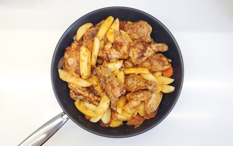 Каб наблізіць вынік да прыгатаванай у казане смажаніны, варта ўзяць чыгунную жароўню (у скрайнім выпадку, вок) і даволі моцна разагрэць яе. Абсмажваць усе інгрэдыенты на моцным агні.