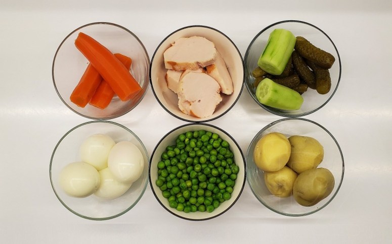 - огурцы/корнишоны – по объёму как картошки (могут быть солёными, маринованными или свежими, или всё вместе)