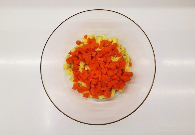 Отварить картофель и морковь до мягкости в слегка подсоленной воде – желательно отдельно, т. к. время варки разное: