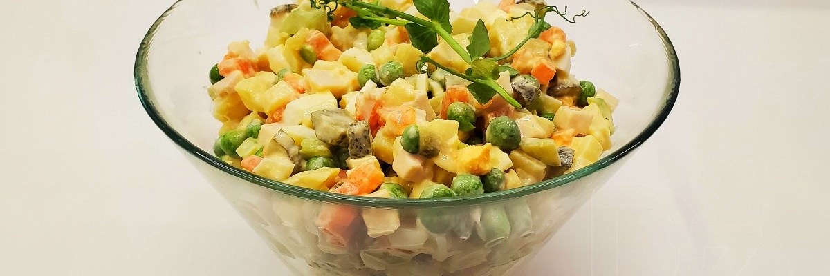 А в России оливье часто незатейливо и скромно называют «мясным салатом».🙂