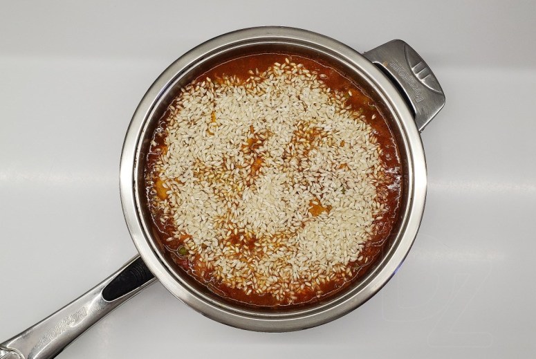 - рыс – 200 г (найлепш – Callasparra альбо Arroz Bomba, але можна і Arborio, Baldo, Carnaroli і г.д.)