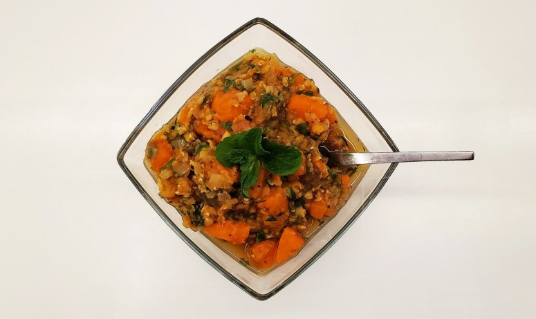 Так как сложно сказать, насколько набухнет конкретный сорт чечевицы, можно использовать следующий принцип: чечевицы должно быть чуть меньше, чем тыквы.