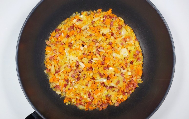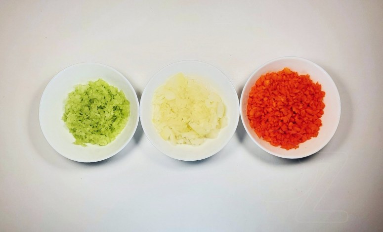 Моркву і салеру нарэзаць як найдрабней. Можна нават блендэрам-здрабняльнікам (чоперам) на невялікай хуткасці: