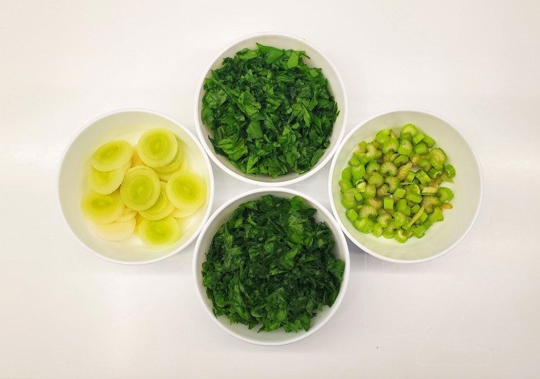 - шчаўе, шпінат, зялёная салата (можна штосьці адно, але лепш больш)