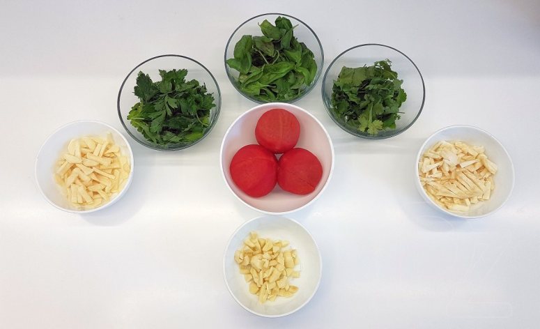 - зелень – кинза и петрушка – по небольшому пучку, плюс желательно немного свежего эстрагона и базилика