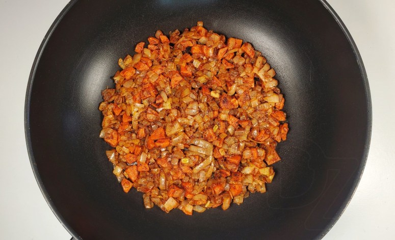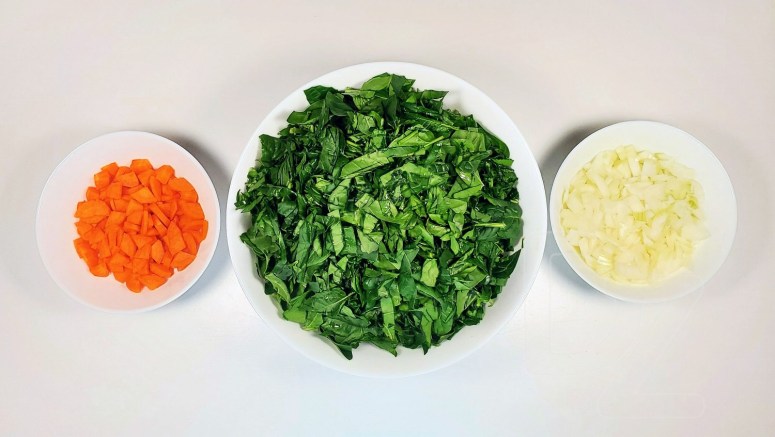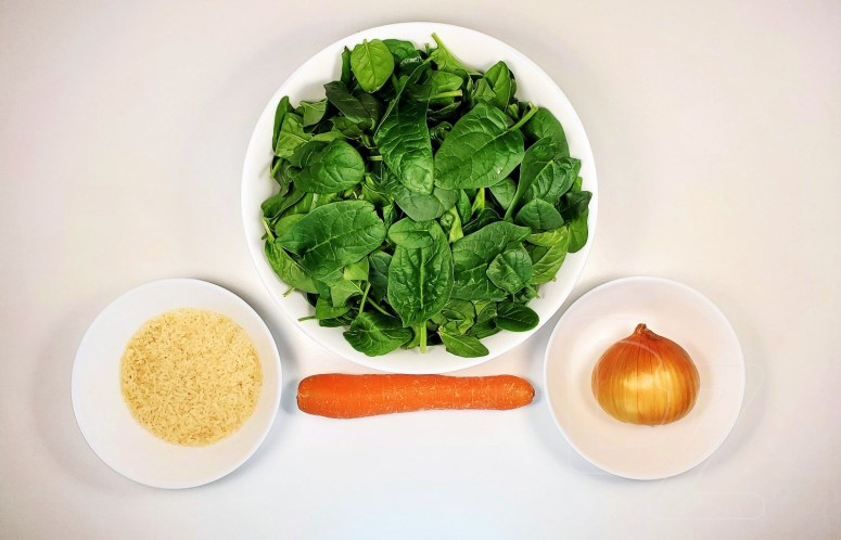 У базавым варыянце з гародніны тут, акрамя шпінату – толькі цыбуля і морква.