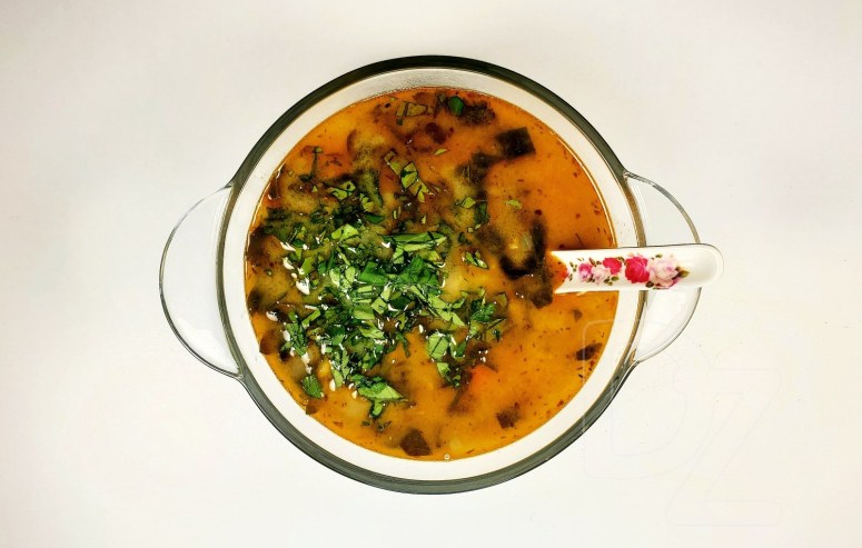 Больш кіпяціць чорбу нельга, інакш згорнецца яечная заправа.