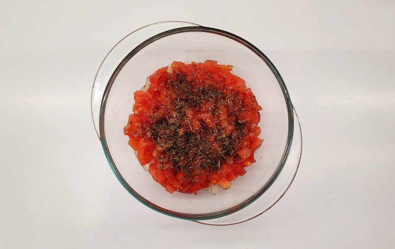 Дадаць сметанковае масла, дробна нарэзаныя памідоры, соль, перац і спецыі: