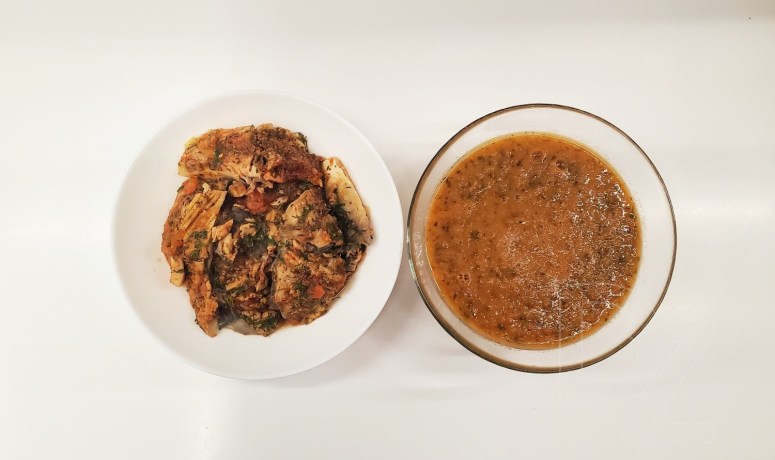 Галоўная фішка стравы – густы, вельмі насычаны соус з гародніны.