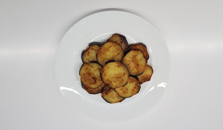 Обжарить баклажаны в растительном масле до золотистой корочки:
