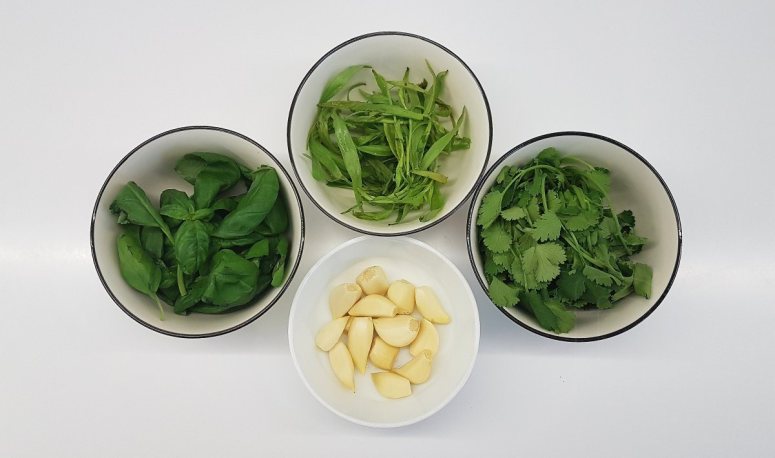 - зелень (кинза, базилик – обязательно, эстрагон – очень желательно, плюс петрушка) – зелени нужно довольно много. Можно использовать сухой эстрагон.