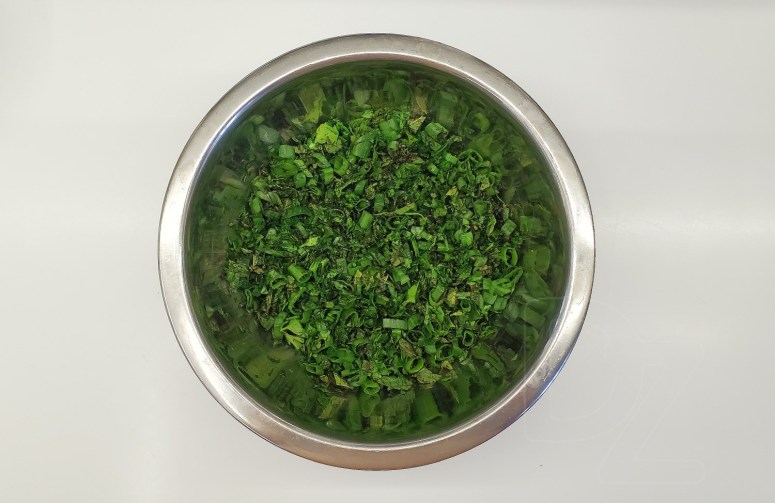Пятрушку і мяту дробна насекчы: чым драбней, тым больш соку дасць зеляніна, і тым больш сакавітай будзе салата: