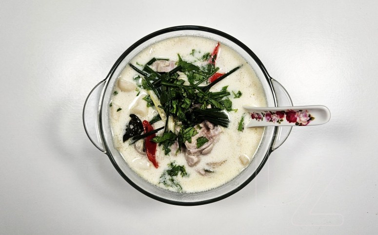 Па-тайску назва выглядае як «้มข่าไก่».🙃