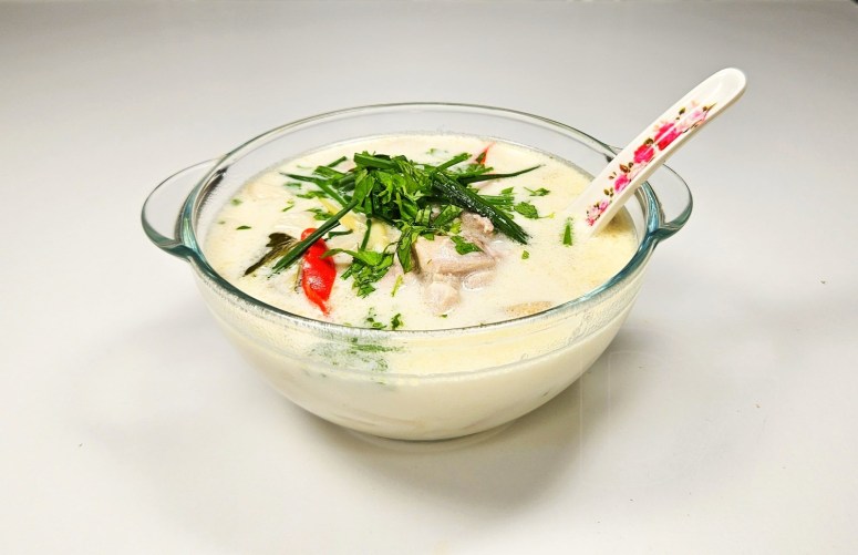 Перакладаецца ўсё гэта вельмі літаральна: «Tom (том)» – варыць, «Kha (кха)» – калган, ён жа галангал, ну а «Gai (гай)» – гэта курыца. Карацей, суп з курыцы с калганам. Але галоўная фішка – какосавае малако.