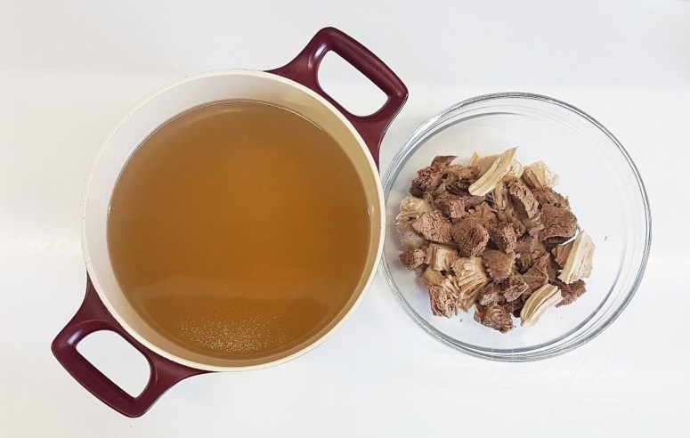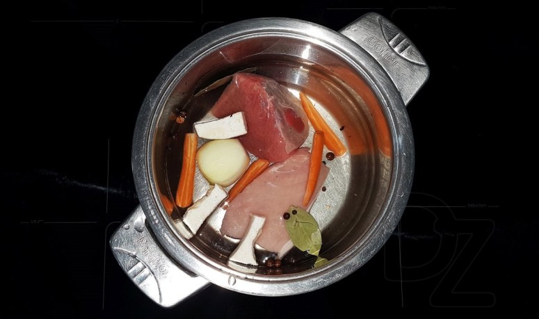 Зварыць булён з двух гатункаў мяса (костак). Мясны булён звычайна вараць паўтары гадзіны, булён з касцей – аж да 5 гадзін. Варта дадаць у яго цыбулю, салеру, моркву і спецыі. Пасля гародніну і прыправы без шкадавання выкінуць: