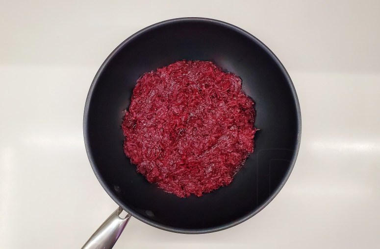 Пакуль абсмажваеце буракі, можна апырскаць іх воцатам ці цытрынавым сокам, бо інакш яны згубяць колер.