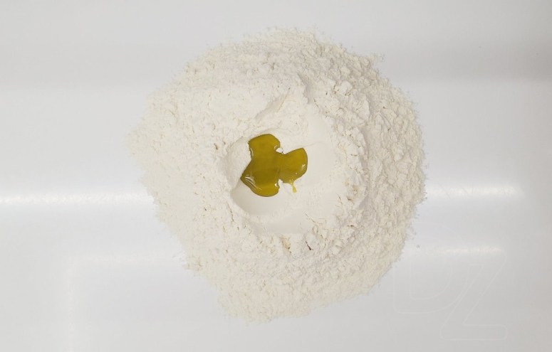 Замесить тесто до однородного состояния, постоянно подливая понемногу воду.