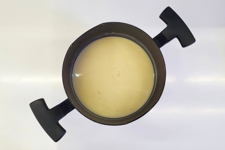 Давесці да кіпення, увесь час памешваючы, і адразу выключыць (як заўсёды – каб ёгурт не скруціўся).