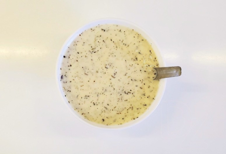 Узяць крыху гарачага булёну з рондалю з рысам, уліць яго да ёгурту і актыўна перамяшаць (каб ёгурт не скруціўся).