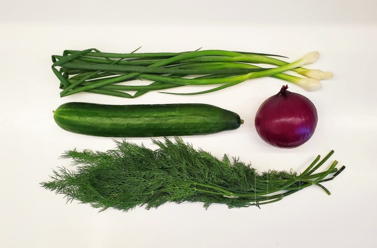 - зеляніна (кроп, зялёная цыбуля) – па невялікім пучку